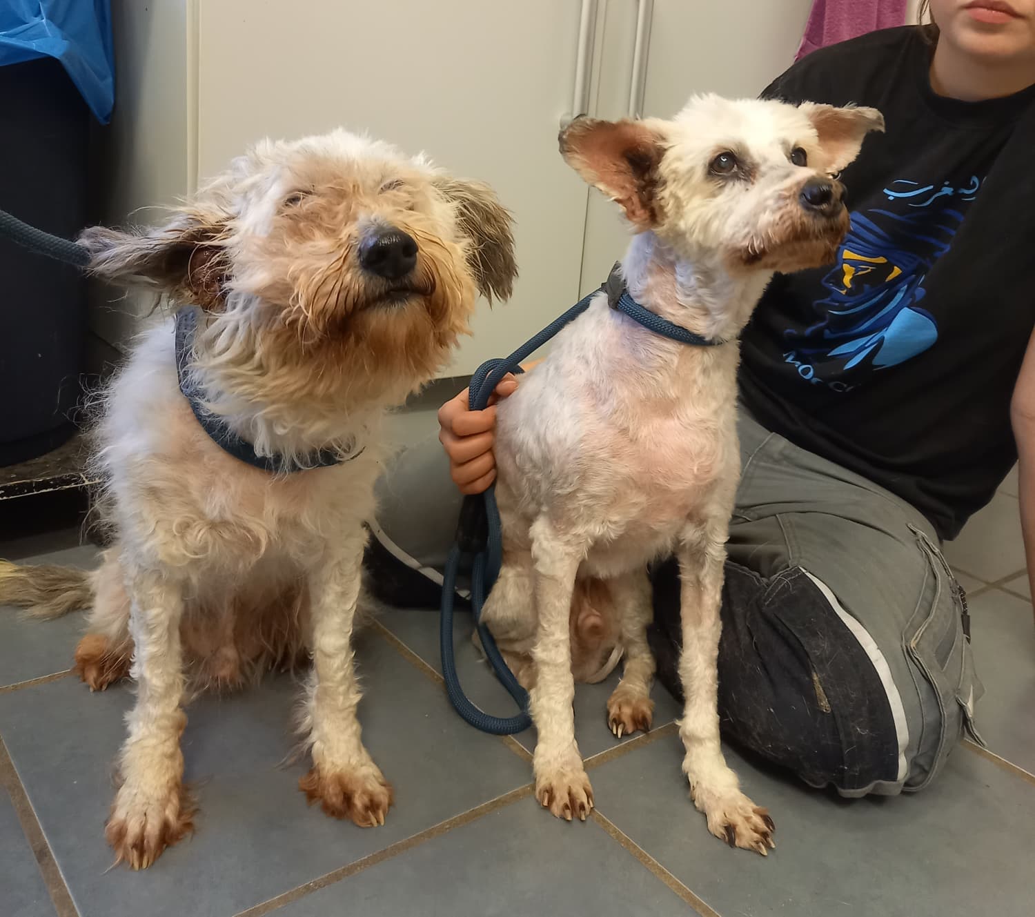 Diese beiden freundlichen Rüden wurden am 1. April im Bad Driburger Ortsteil Reelsen gesichert. Zum Zeitpunkt des Funds waren beide ungeschoren und von Filzplatten übersät.