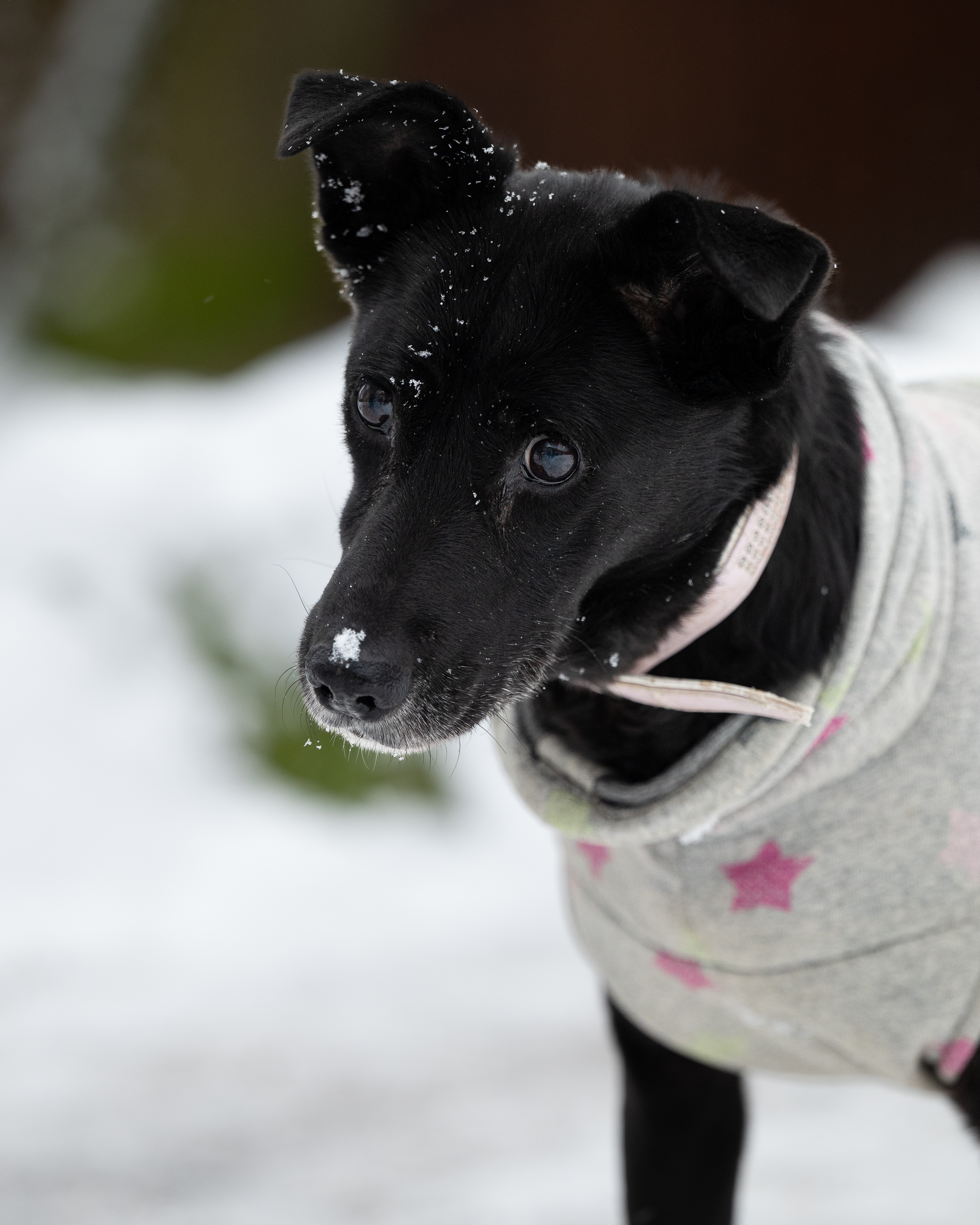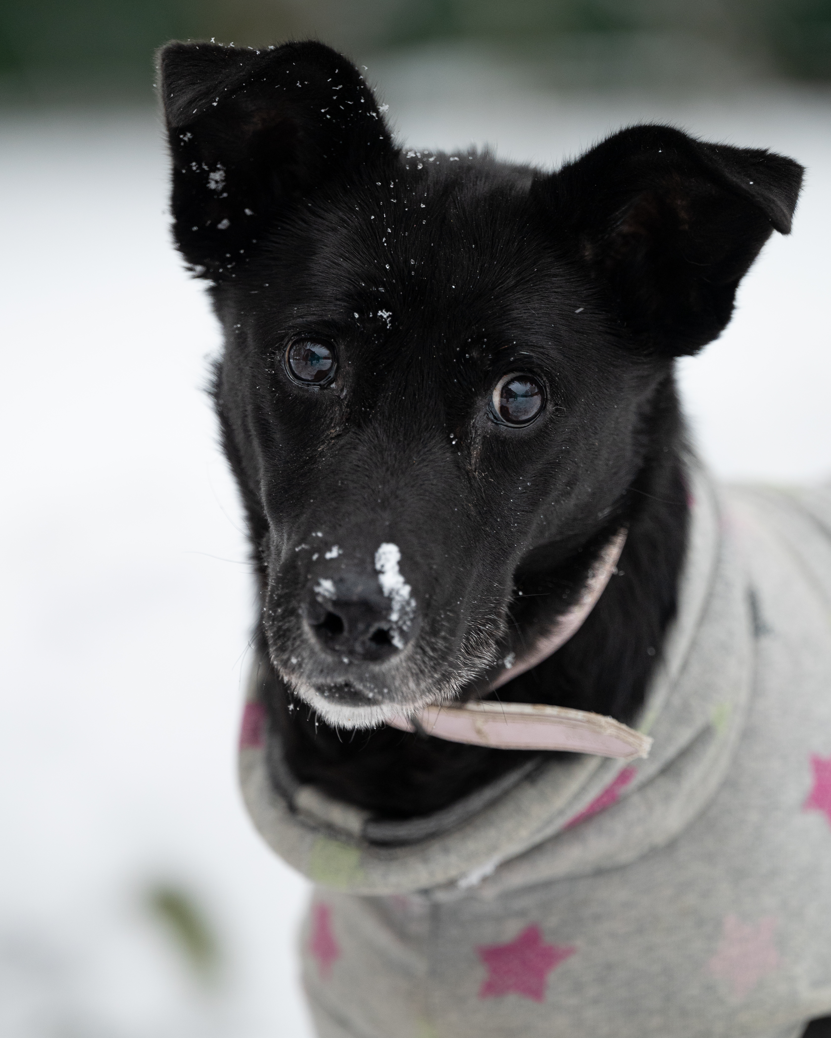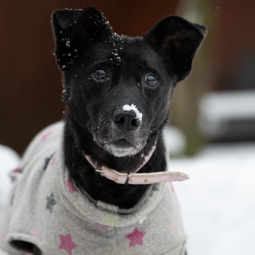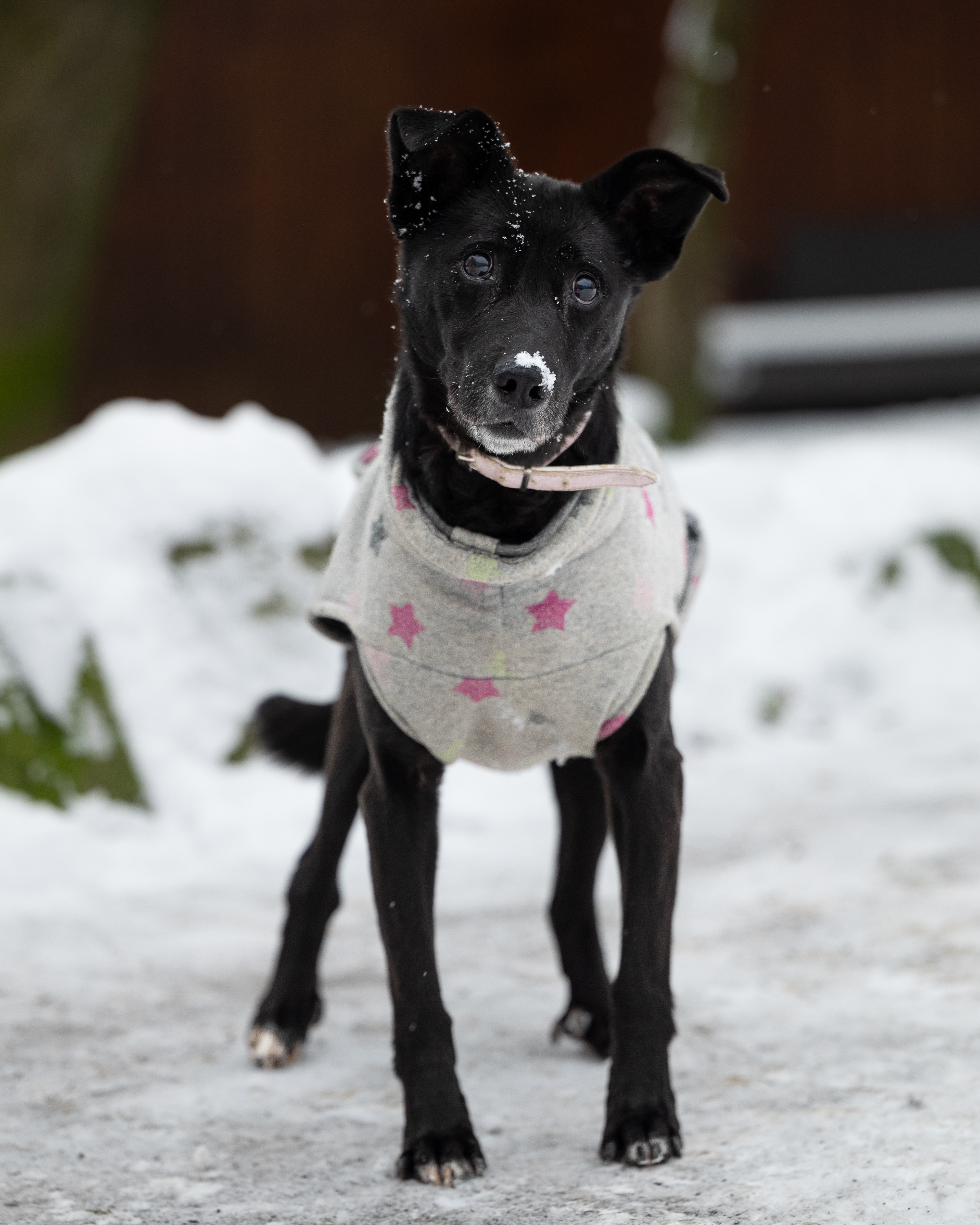Sie ist neugierig, legt tiefes Vertrauen in ihr bekannte Menschen und vollführt noch immer wilde Tänze, wenn sie sich freut. Im Großen und Ganzen lässt sie es mittlerweile dennoch sehr viel ruhiger angehen, dreht auch ihrer Spondylosen wegen nur noch kurze Runden, freut sich auf das sonntägliche Preisausschreiben und schläft gern eingerollt auf ihrem Lieblingssessel.