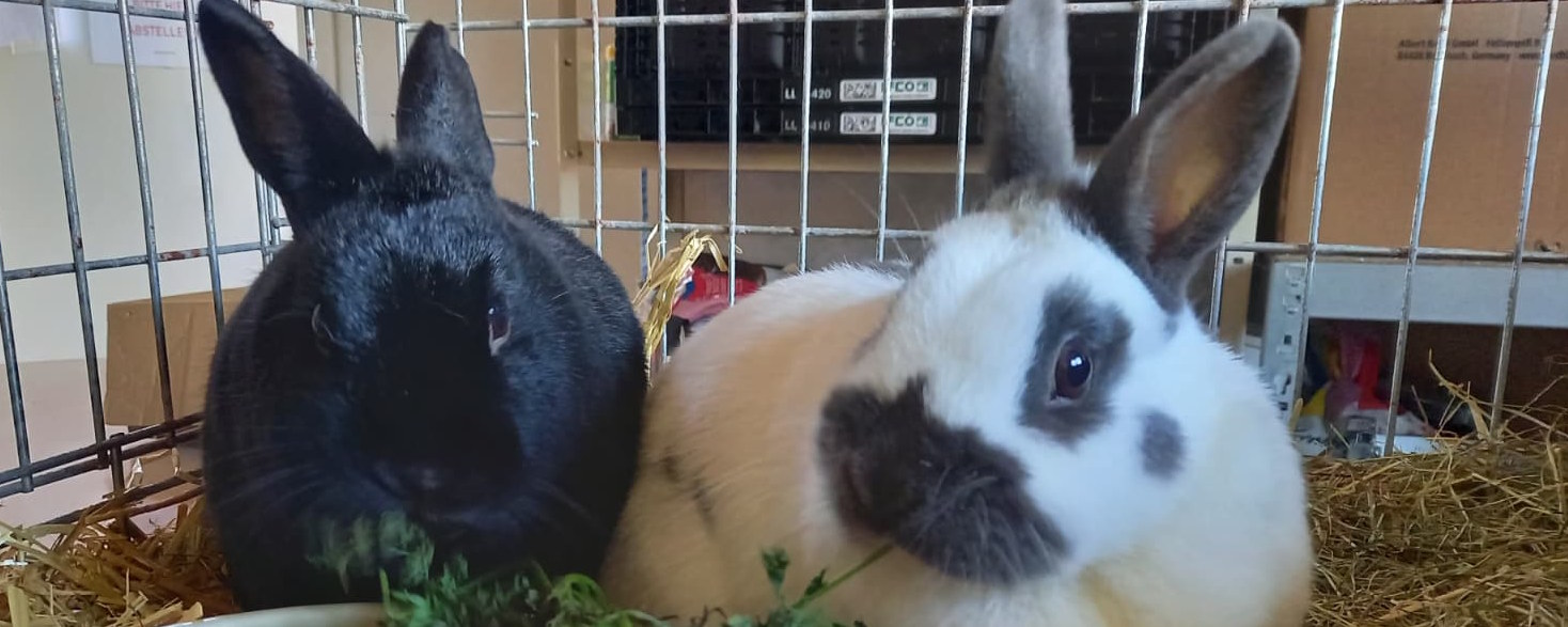 Mai & Tai wurden im Stadtgebiet Brakel ausgesetzt und kamen über das Ordnungsamt als Fundtiere zu uns. Nachdem sie sich die ersten 24 Stunden noch recht schüchtern gaben, hat sich insbesondere Mai als neugierige und selbstbewusste Kaninchendame entpuppt.