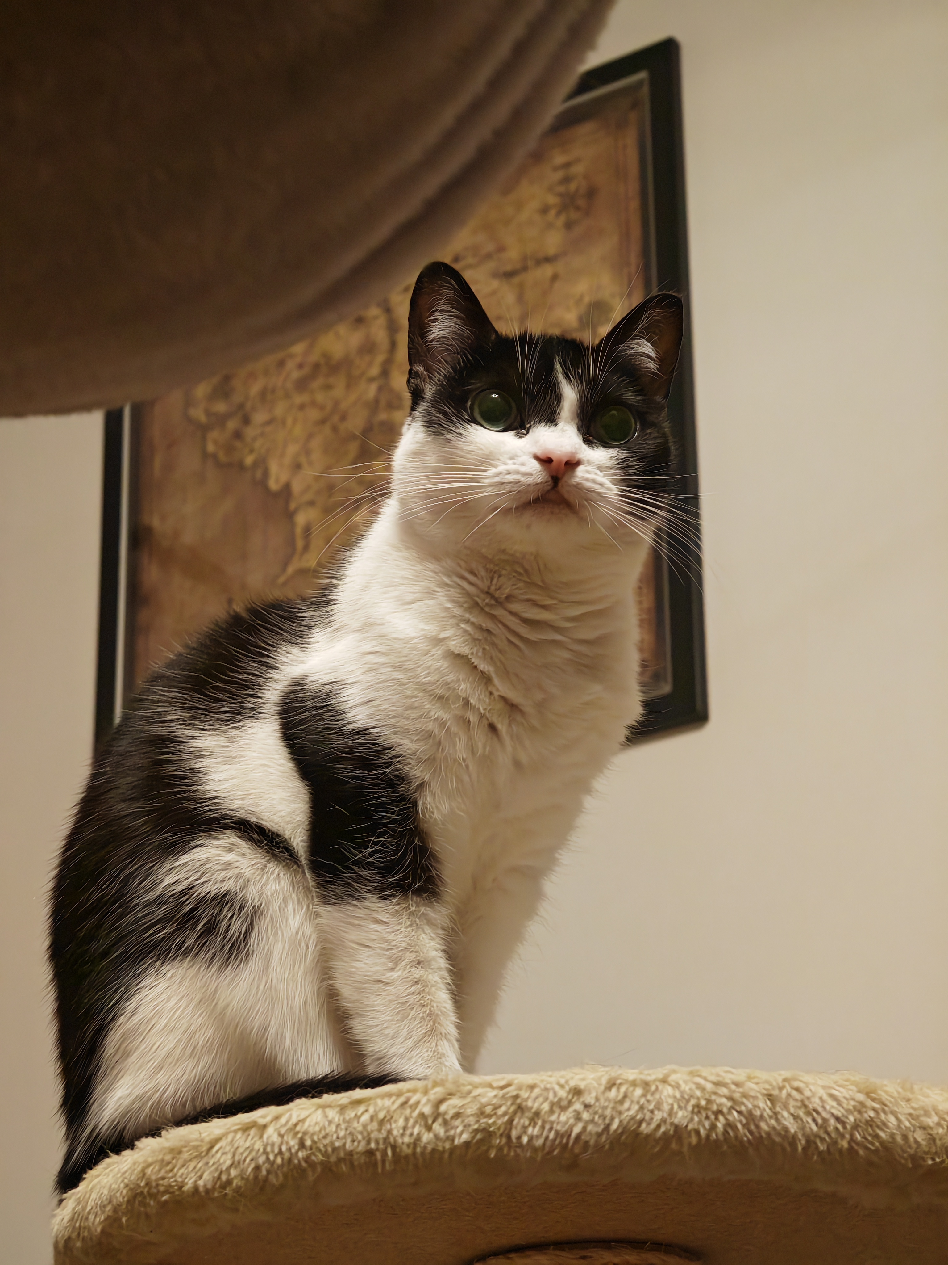 Ich bin also inzwischen entspannt und offener für neue Katzenfreunde. Bisher bin ich doch noch von meinen Pflegeeltern verunsichert. Aber da ich so winzig klein und leise bin, husche ich einfach überall entlang, um einfach bei allem dabei zu sein. Sie merken anscheinend nicht, wenn ich einen Zentimeter an ihnen vorbeisause. Meine Pflegemama nennt mich immer einen kleinen Geist. Was auch immer damit gemeint ist. Wenn sie irgendwo sitzen, sitze ich immer mit dabei. Ja okay, mit ein wenig Abstand. Aber irgendwie hätte ich ja schon Lust auf mehr Kontakt... Wobei...