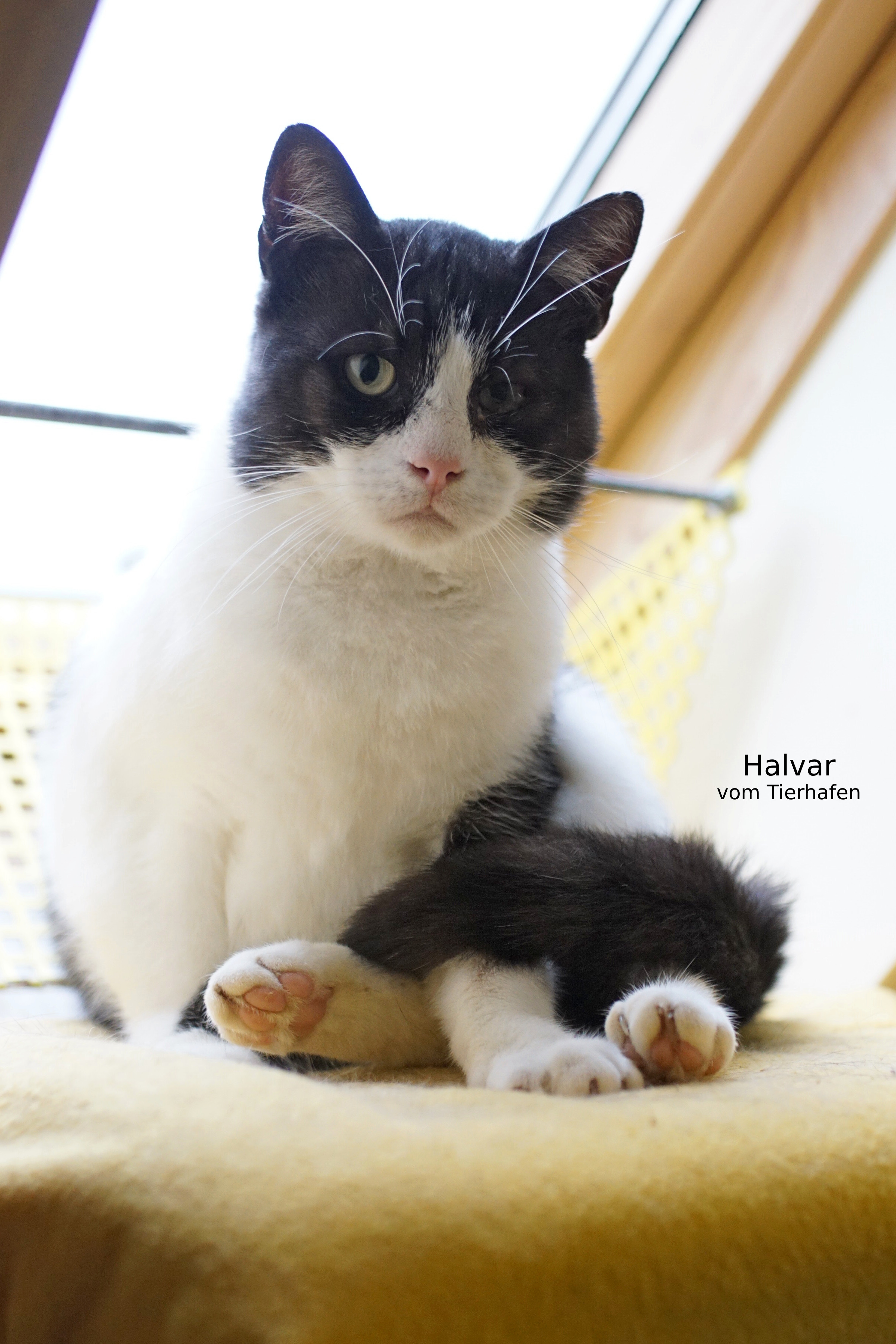 Sein vorheriges Leben verbrachte der Süßmolch als streunender Dorfkater im Warburger Ortsteil Dössel, wo er bereits durch einen anderen Tierschutzverein kastriert und von Anwohnern versorgt wurde. Als letzteres nicht mehr bewerkstelligt werden konnte, bezog Halvar ein Zimmer im Tierhafen. Hier brauchte es nur wenige Tage, bis er sein neues Personal um die Pfote gewickelt hatte.