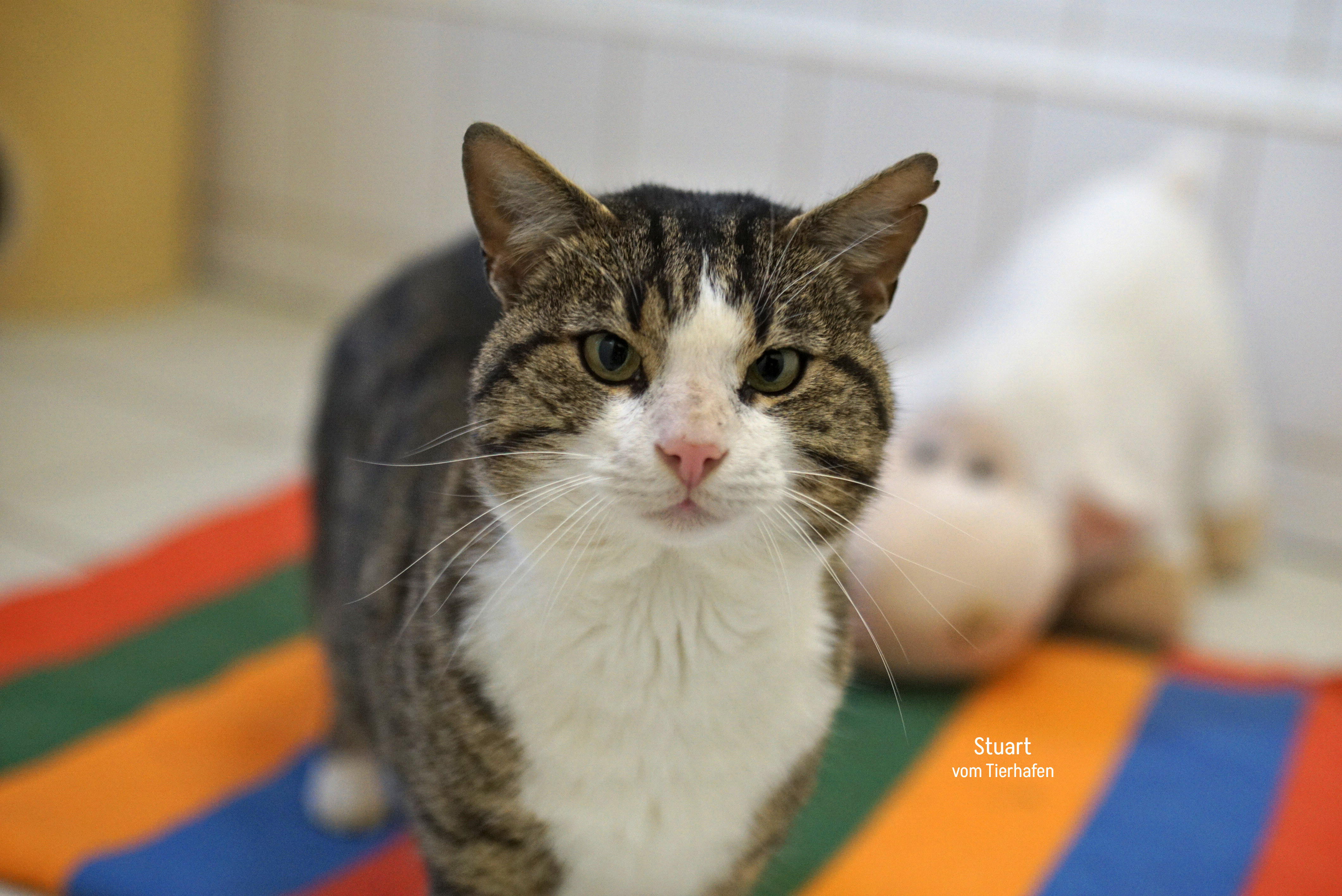 Im Rahmen der medizinischen Grundversorgung wurde Stuart positiv auf FIV & FeLV getestet, Für ihn wird daher ein Zuhause in abwechslungsreicher Wohnungshaltung gesucht, die ihm bestenfalls auch mindestens einen gesicherten Balkon bieten kann, um ein bisschen Frischluft zu schnuppern.